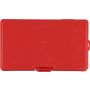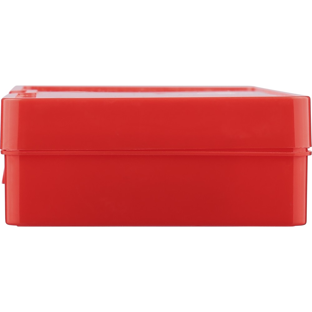 PP anyagból készült elsősegélykészlet piros tokban, a felső részen fehér kereszttel és csatos záródással. Tartalma: 2 nemszőtt törlőkendő, 5 ragtapasz, 4 alkoholos törlőkendő, 1 olló, 1 tekercs 450 cm hosszú gézkötés és 1 tekercs 450 cm hosszú ragasztószalag.