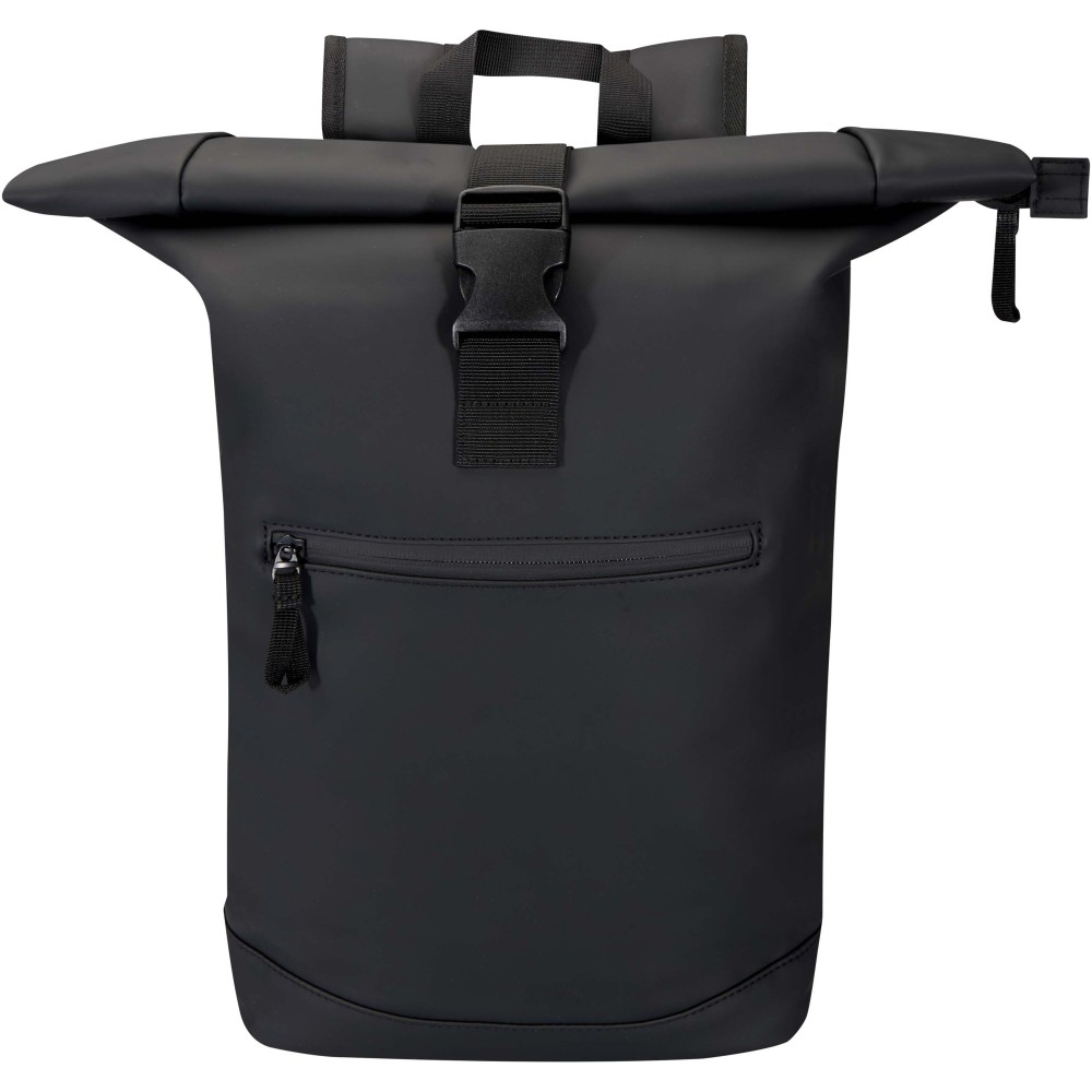 Prémium, újrahasznosított PU bőrből készült, színben harmonizáló RPET béléssel, ez a rolltop hátizsák modern megjelenést és hosszú élettartamot kínál. Vízlepergető felülete megóvja a tartalmát esőtől és nedvességtől, míg a feltekerhető zárórész rugalmas pakolást tesz lehetővé - ideális laptop hátizsákként ingázáshoz, utazáshoz vagy edzőterembe. Belsejében párnázott rekesz található, amely akár 15,6" laptopot is biztonságosan tárol, valamint egy cipzáras zseb a technikai eszközök és mindennapi kellékek rendszerezésére. A külső részen vízálló cipzárral ellátott elülső zseb biztosít gyors és biztonságos hozzáférést, míg a párnázott, állítható vállpántok és a légáteresztő hátpanel egész napos kényelmet nyújtanak.