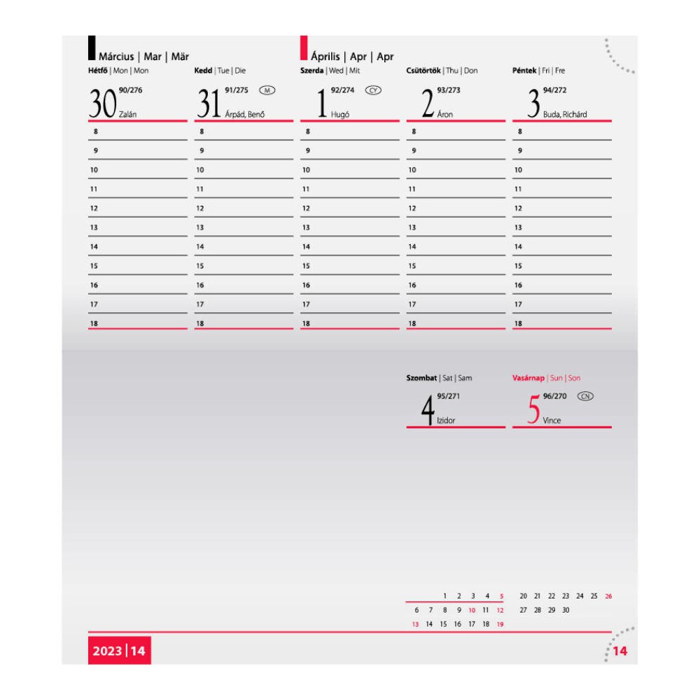 Standard Zsebnaptár - fekvő