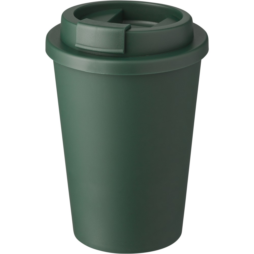 Kávéspohár csavaros fedéllel és felpattintható ivórésszel. Jó hőtartó, hideg és meleg italokhoz is használható. Űrtartalom: 350 ml. PP műanyag.