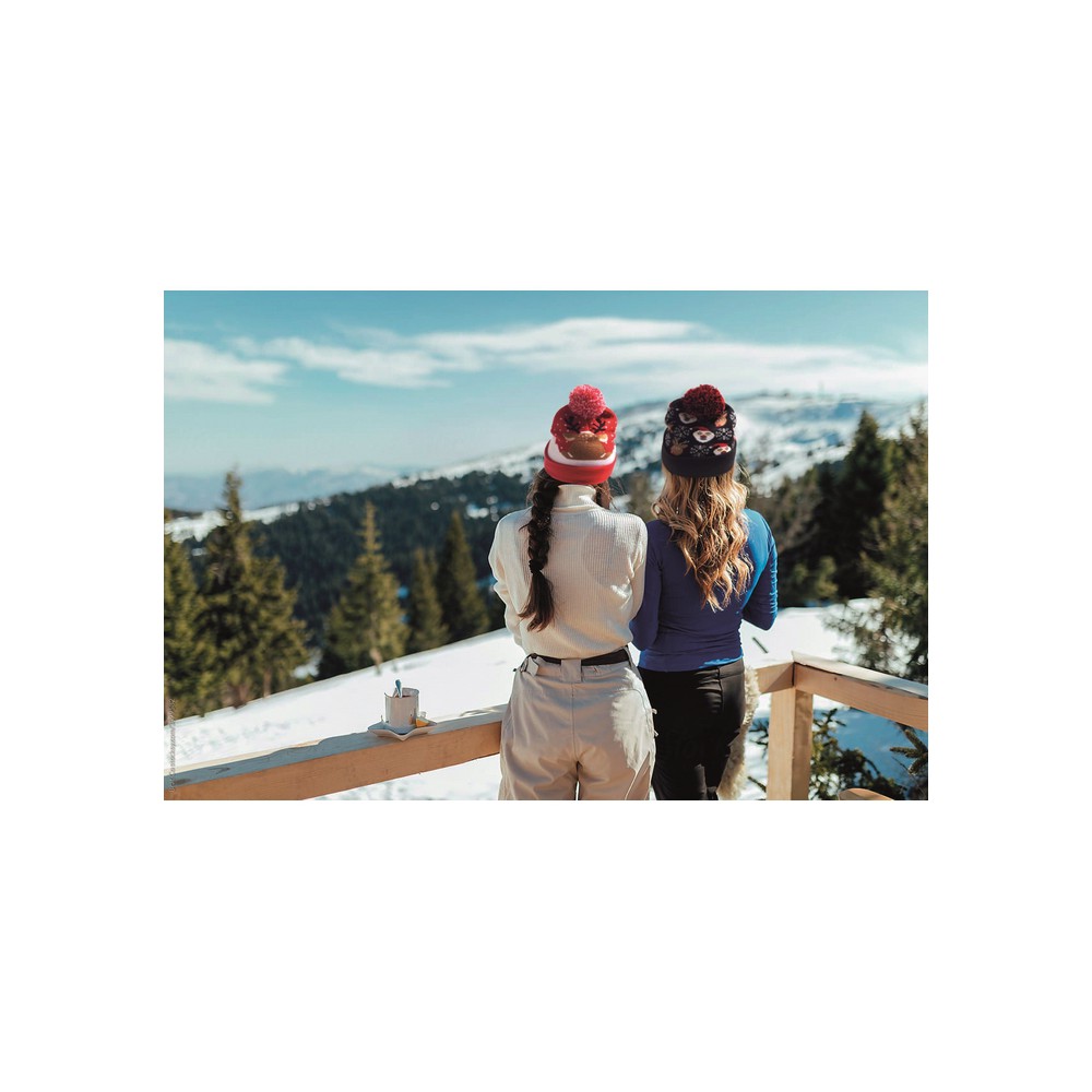 Karácsonyi kötött sapka mandzsettás aljjal, bojttal, puha, rugalmas akril anyagból.