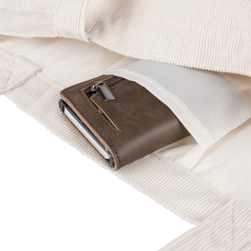 Kordbársony anyagból készült válltáska 2,5 × 60 cm hosszúságú fülekkel, 51 × 15 × 33 cm méretű tágas fő rekesszel és 10 × 10 cm méretű belső zsebbel. Mindennapi használatra alkalmas.