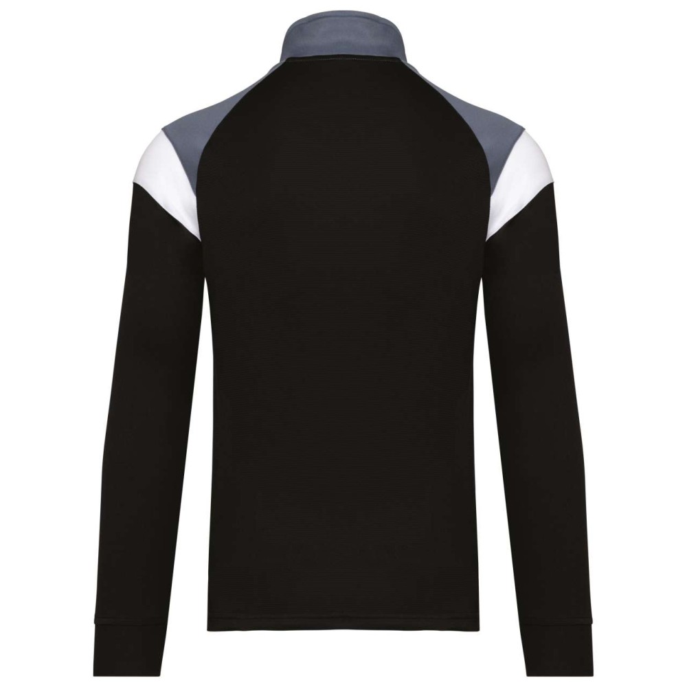 Anyaga: 100% matt poliészter interlock. Egyenes szabás. Elöl fordított cipzáras záródás színazonos nejlonból. Raglán ujjak kontrasztos vállbetétekkel. Kontrasztos mell- és vállkialakítás. Két cipzáras elülső zseb. Texturált anyagbetétek az oldalakon és a hátrészen. Cipzárfedő a felső nyakkivágásnál a nagyobb kényelem érdekében. Könnyen eltávolítható márkajelzés a dekorációhoz.