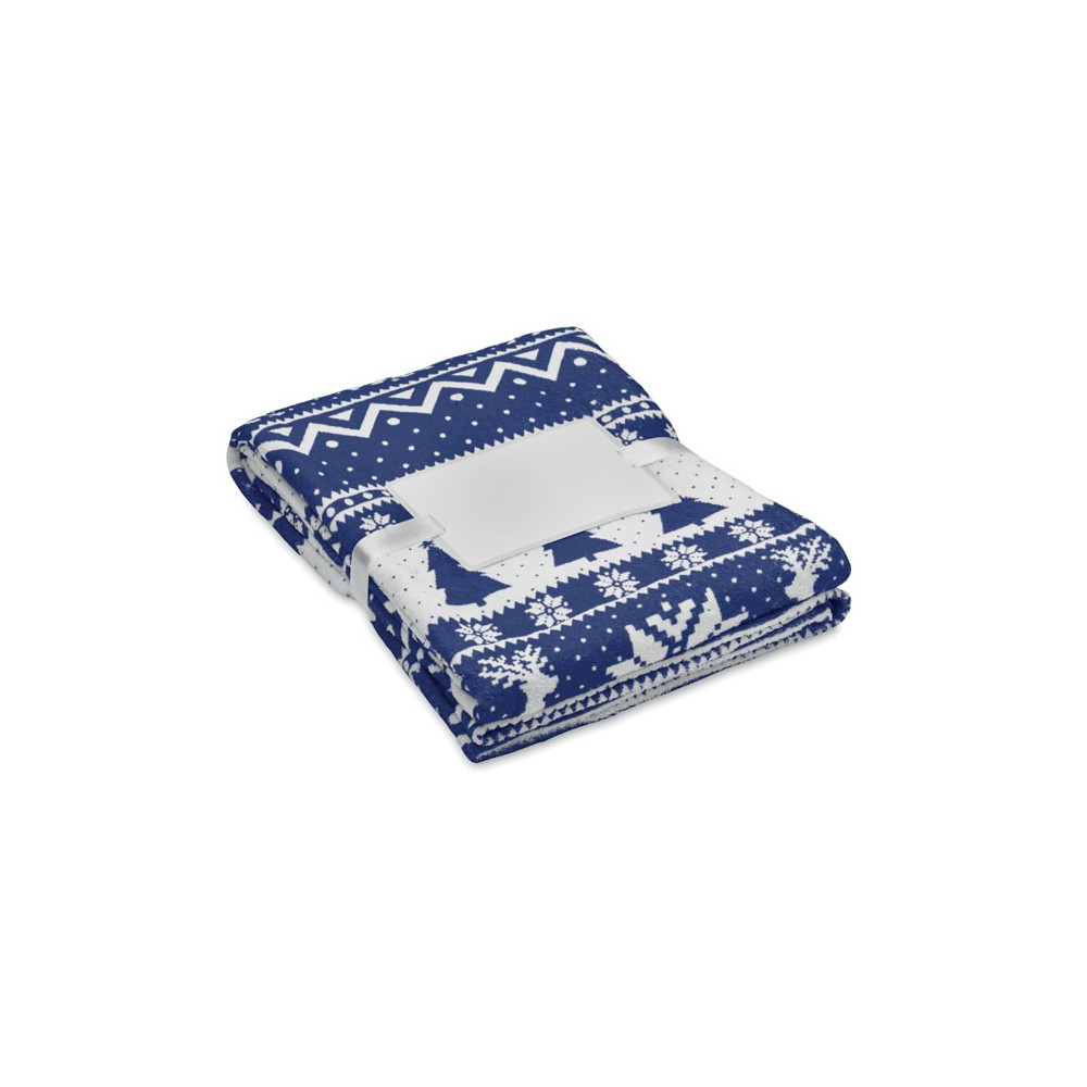 190 g/m2 vastag RPET korall fleece takaró téli mintával. Szalaggal átkötve, emblémázható kártyával szállítjuk.