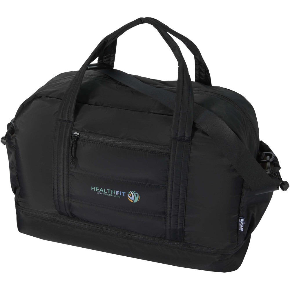 A Puffer sporttáska egyedi megjelenést ötvöz prémium minőségű, GRS tanúsítvánnyal rendelkező újrahasznosított alapanyagokkal, így ideális választás a mindennapi használathoz. A 30 literes űrtartalom tökéletes rövid utazásokhoz, edzéshez vagy hétköznapi teendőkhöz. A táska tágas, cipzáras fő rekesszel rendelkezik ruhák és felszerelések számára, valamint egy szigetelt, PEVA bélésű alsó rekesszel, amely lehetővé teszi a nedves és száraz holmik elkülönítését. A több belső és külső zseb segíti az átlátható rendszerezést, míg a bőröndre rögzíthető pánt, az állítható vállpánt és a kézifogantyúk sokoldalú hordozási lehetőséget biztosítanak. Könnyű és vízlepergető kialakításának köszönhetően ez a sporttáska könnyedén alkalmazkodik az életviteledhez.